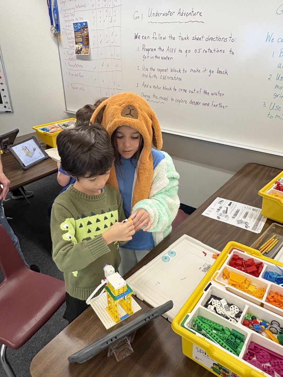 Our 1st Grade engineers are putting on their coding caps today. Following the task sheet, they are learning how to program an AUV (Autonomous Underwater Vehicle) to explore the "ocean."Today's mis...