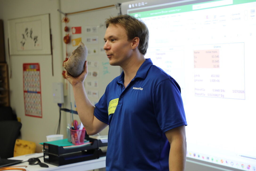 In the Copper Smelting session, Kyle Everly (our own Melissa Everly's son!) helped students explore the massive scale of modern mining operations. They learned the difference between underground mining, sometimes with tunnels reaching thousands of feet below the surface, and open-pit mining, where engineers essentially "take the roof off" to access ore more efficiently.